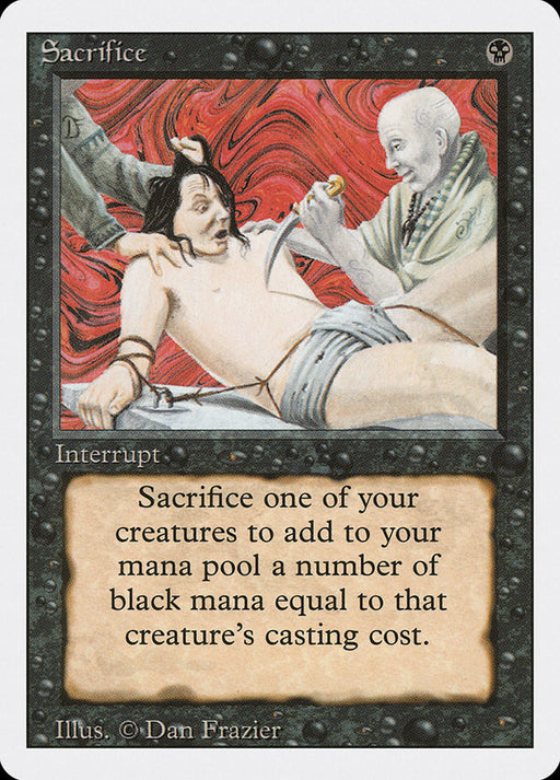 Revised EditionRupture de stockAs an additional cost to cast this spell, sacrifice a creature. Add an amount of {B} equal to the sacrificed creature's converted mana cost.