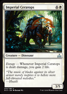 Rivals of IxalanEn stockEnrage — Whenever Imperial Ceratops is dealt damage, you gain 2 life.