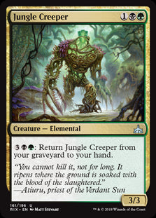 Rivals of IxalanEn stock{3}{B}{G}: Return Jungle Creeper from your graveyard to your hand.