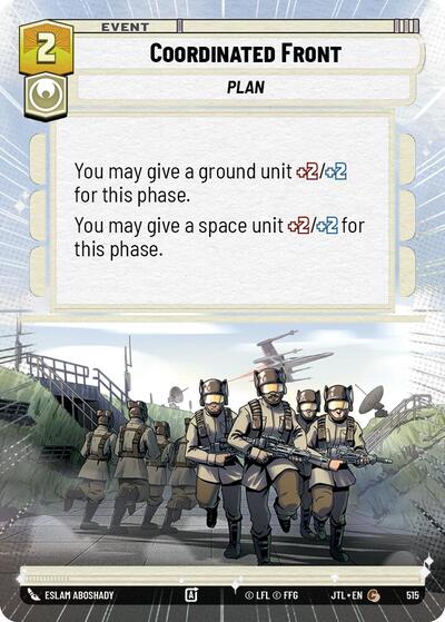 Jump to LightspeedRupture de stockYou may give a ground unit +2/+2 for this phase. You may give a space unit +2/+2 for this phase.