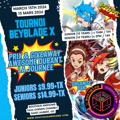 Boutique AwesomeEn stockVenez participer au tournoi Beyblade X de la Boutique Awesome Dimanche le 15 Février 2026!!👉 Pour mieux servir notre communauté grandissante, nous ...