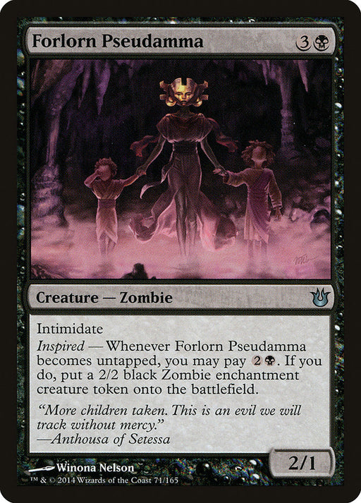 Born of the GodsEn stockIntimidate (This creature can't be blocked except by artifact creatures and/or creatures that share a color with it.) Inspired — Whenever Forlorn P...
