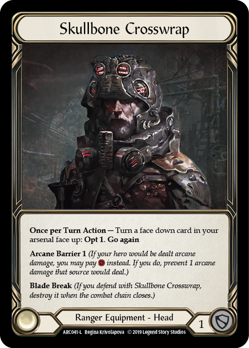 Arcane RisingRupture de stockIf you have less [Life] than your opponent, Arcanite Skullcap gains +1 [Defense] and **Arcane Barrier 3.** *(If your hero would be dealt arcane dam...