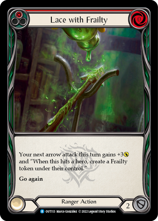 OutsidersRupture de stockYour next arrow attack this turn gains +3 [attack] and "When this hits a hero, create a Frailty token under their control." **Go again**