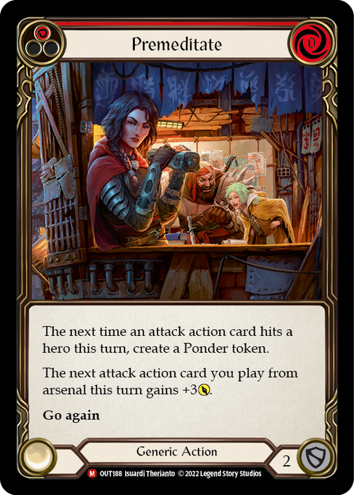 OutsidersRupture de stockThe next time an attack action card hits a hero this turn, create an Ponder token. The next attack action card you play from arsenal this turn gai...