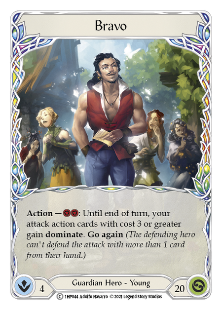 History Pack 1Stock bas**Action** - [2 Resource]: Until end of turn, your attack action cards with cost [3 Resource] or greater gain **dominate**. **Go again** *(The defe...