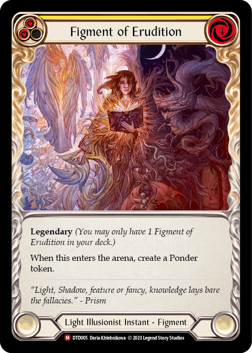Dusk till DawnRupture de stockLegendary (You may only have 1 Figment of Erudition in your deck.) When this enters the arena, create a Ponder token.