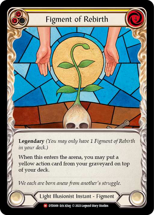 Dusk till DawnRupture de stockLegendary (You may only have 1 Figment of Triumph in your deck.) When this enters the arena, attack action cards your opponents control get -1{p} t...