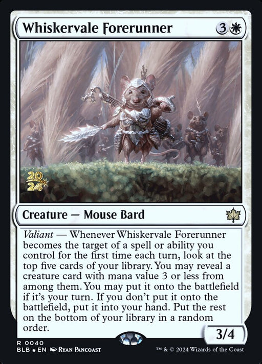Bloomburrow PromosRupture de stockValiant — Whenever Whiskervale Forerunner becomes the target of a spell or ability you control for the first time each turn, look at the top five c...