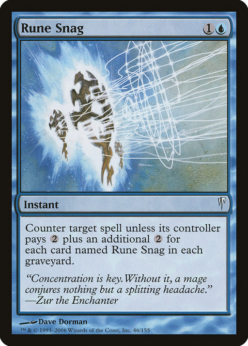 ColdsnapStock basCounter target spell unless its controller pays {2} plus an additional {2} for each card named Rune Snag in each graveyard.