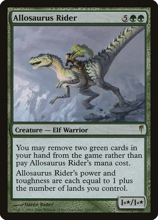 ColdsnapStock basVous pouvez exiler deux cartes vertes de votre main plutôt que de payer le coût de mana de ce sort. La force et l'endurance d'Allosaurus Rider sont...