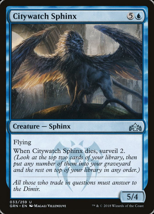 Guilds of RavnicaEn stockFlying Menace (This creature can't be blocked except by two or more creatures.) Whenever you surveil, put a +1/+1 counter on Dimir Spybug.