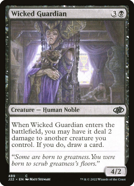 Jumpstart 2022Rupture de stockWhen Wicked Guardian enters the battlefield, you may have it deal 2 damage to another creature you control. If you do, draw a card.