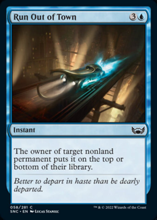Streets of New CapennaStock bas{3}{U}: Sewer Crocodile can't be blocked this turn. This ability costs {3} less to activate if there are five or more mana values among cards in yo...