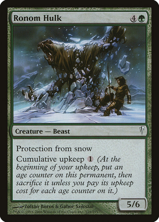 ColdsnapStock basTrample Cumulative upkeep {G} or {W} (At the beginning of your upkeep, put an age counter on this permanent, then sacrifice it unless you pay its u...