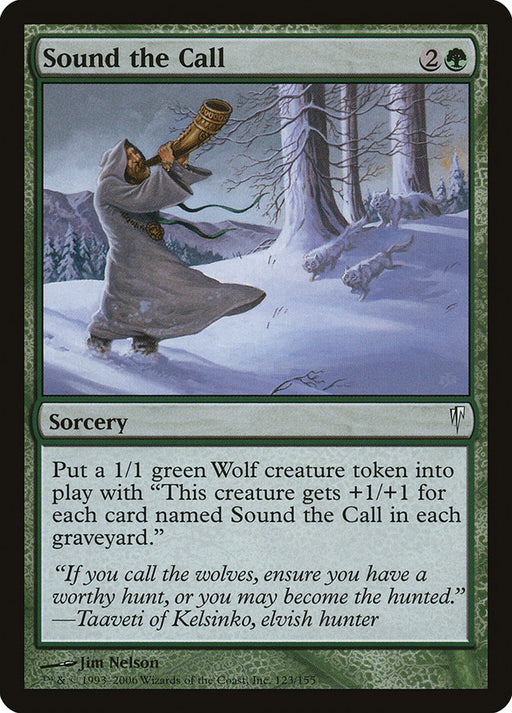 ColdsnapEn stockCreate a 1/1 green Wolf creature token. It has "This creature gets +1/+1 for each card named Sound the Call in each graveyard."