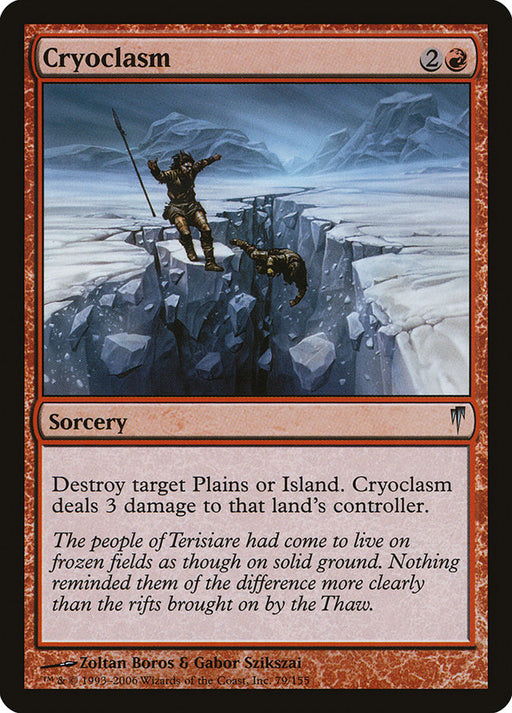 ColdsnapEn stockDestroy target Plains or Island. Cryoclasm deals 3 damage to that land's controller.