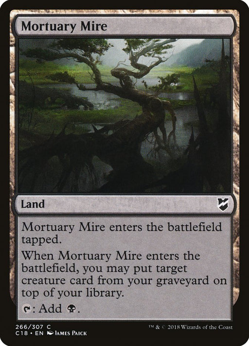Commander 2018Rupture de stockMortuary Mire enters the battlefield tapped. When Mortuary Mire enters the battlefield, you may put target creature card from your graveyard on top...