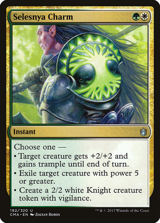 Commander AnthologyRupture de stockChoose one — • Target creature gets +2/+2 and gains trample until end of turn. • Exile target creature with power 5 or greater. • Create a 2/2 whit...