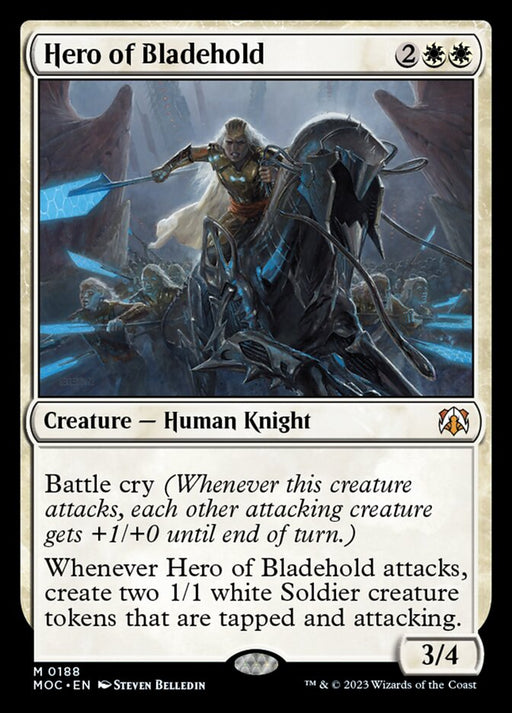 March of the Machine CommanderRupture de stockBattle cry (Whenever this creature attacks, each other attacking creature gets +1/+0 until end of turn.) Whenever Hero of Bladehold attacks, create...