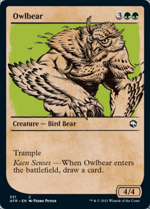 Adventures in the Forgotten RealmsStock basTrample Keen Senses — When Owlbear enters the battlefield, draw a card.