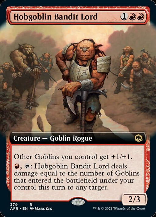 Adventures in the Forgotten RealmsStock basOther Goblins you control get +1/+1. {R}, {T}: Hobgoblin Bandit Lord deals damage equal to the number of Goblins that entered the battlefield under...