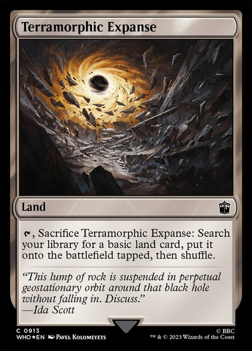 Doctor WhoRupture de stock{T}, Sacrifice Terramorphic Expanse: Search your library for a basic land card, put it onto the battlefield tapped, then shuffle.