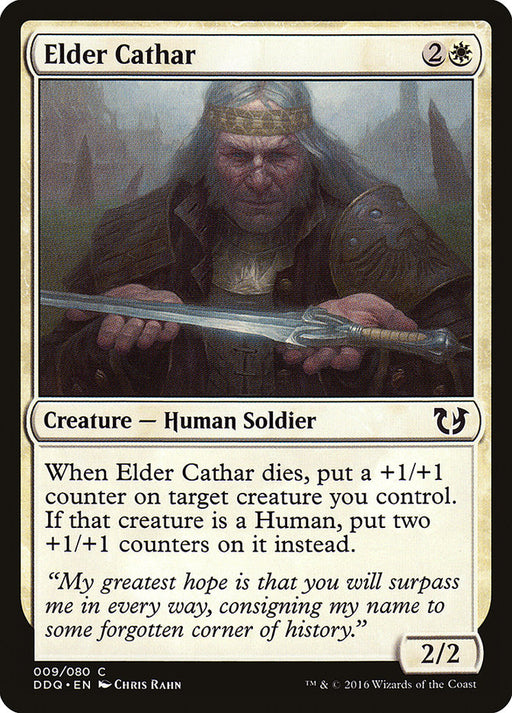 Duel Decks: Blessed vs. CursedStock basWhen Elder Cathar dies, put a +1/+1 counter on target creature you control. If that creature is a Human, put two +1/+1 counters on it instead.