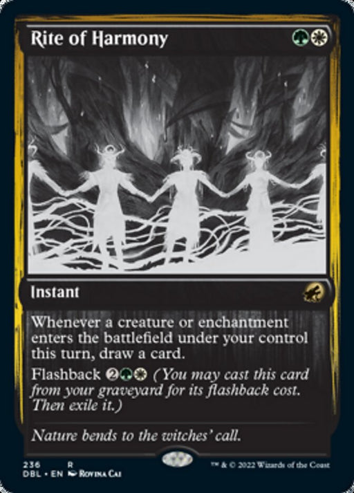 Innistrad: Double FeatureRupture de stockWhenever a creature or enchantment enters the battlefield under your control this turn, draw a card. Flashback {2}{G}{W} (You may cast this card fr...