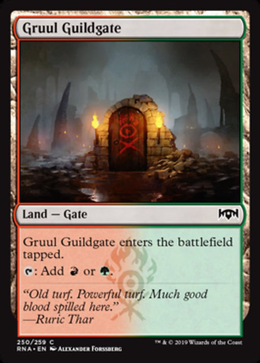 Ravnica AllegianceEn stockGruul Guildgate enters the battlefield tapped. {T}: Add {R} or {G}.