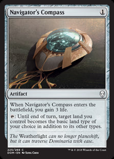 DominariaEn stockWhen Navigator's Compass enters the battlefield, you gain 3 life. {T}: Until end of turn, target land you control becomes the basic land type of yo...