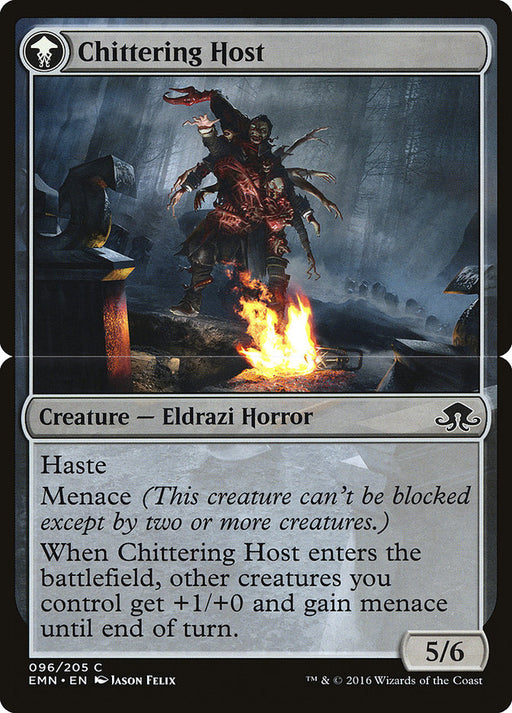 Eldritch MoonRupture de stockHaste Menace (This creature can't be blocked except by two or more creatures.) When Chittering Host enters the battlefield, other creatures you con...