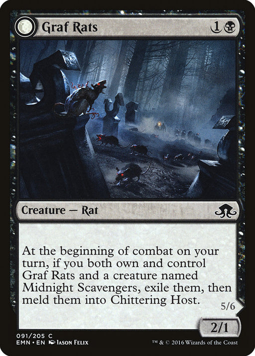 Eldritch MoonEn stockAt the beginning of combat on your turn, if you both own and control Graf Rats and a creature named Midnight Scavengers, exile them, then meld them...