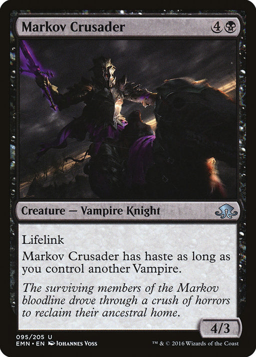 Eldritch MoonEn stockLifelink Markov Crusader has haste as long as you control another Vampire.