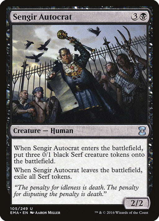 Eternal MastersEn stockWhen Sengir Autocrat enters the battlefield, create three 0/1 black Serf creature tokens. When Sengir Autocrat leaves the battlefield, exile all Se...