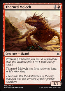 Hour of DevastationEn stockProwess (Whenever you cast a noncreature spell, this creature gets +1/+1 until end of turn.) Thorned Moloch has first strike as long as it's attack...