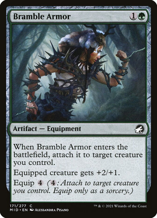 Innistrad: Midnight HuntEn stockWhen Bramble Armor enters the battlefield, attach it to target creature you control. Equipped creature gets +2/+1. Equip {4} ({4}: Attach to target...