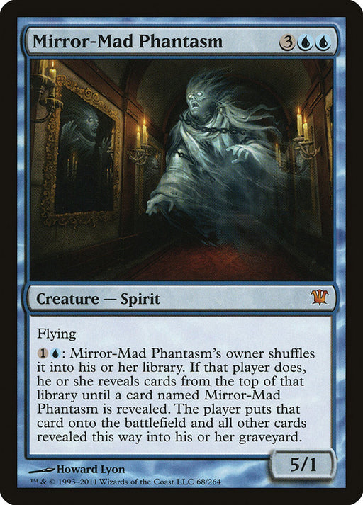 InnistradRupture de stockFlying {1}{U}: Mirror-Mad Phantasm's owner shuffles it into their library. If that player does, they reveal cards from the top of that library unt...