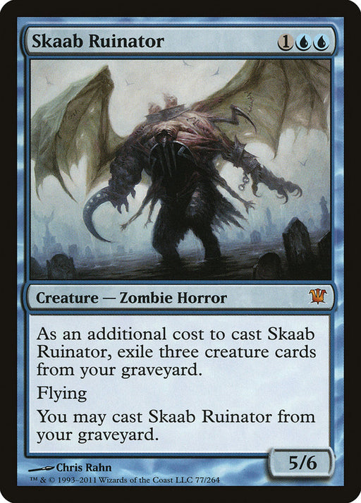 InnistradStock basAs an additional cost to cast this spell, exile three creature cards from your graveyard. Flying You may cast Skaab Ruinator from your graveyard.