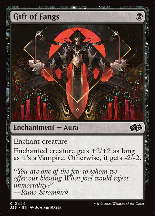 Foundations JumpstartRupture de stockEnchant creature Enchanted creature gets +2/+2 as long as it's a Vampire. Otherwise, it gets -2/-2.