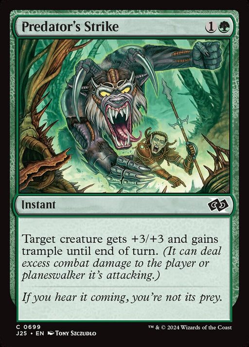 Foundations JumpstartRupture de stockTarget creature gets +3/+3 and gains trample until end of turn.
