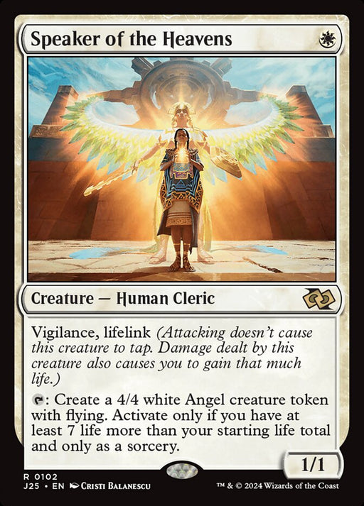 Foundations JumpstartRupture de stockVigilance, lifelink {T}: Create a 4/4 white Angel creature token with flying. Activate only if you have at least 7 life more than your starting lif...
