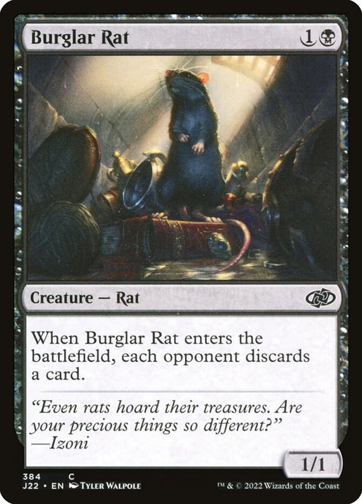 Jumpstart 2022Stock basWhen Burglar Rat enters the battlefield, each opponent discards a card.