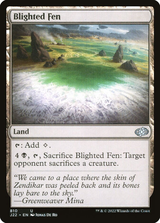 Jumpstart 2022Stock bas{T}: Add {C}. {4}{B}, {T}, Sacrifice Blighted Fen: Target opponent sacrifices a creature.