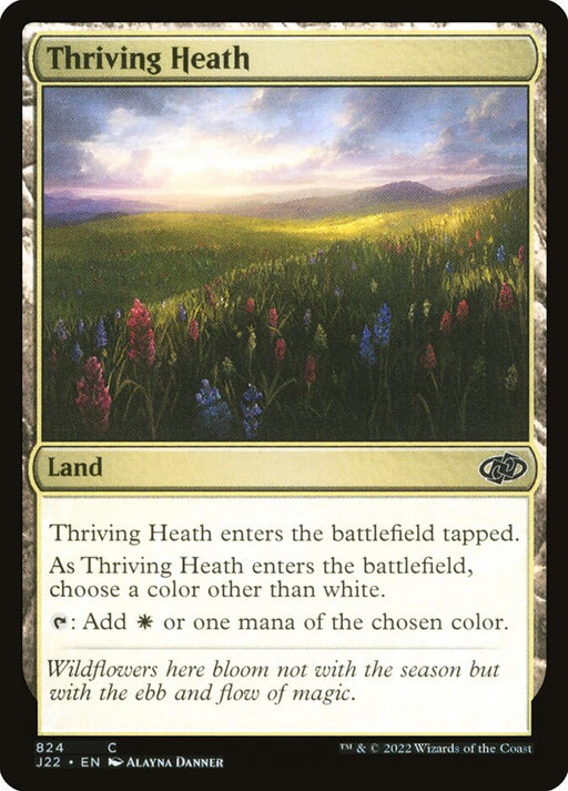 Jumpstart 2022En stockThriving Heath enters the battlefield tapped. As Thriving Heath enters the battlefield, choose a color other than white. {T}: Add {W} or one mana o...