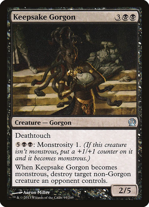 TherosStock basDeathtouch {5}{B}{B}: Monstrosity 1. (If this creature isn't monstrous, put a +1/+1 counter on it and it becomes monstrous.) When Keepsake Gorgon...