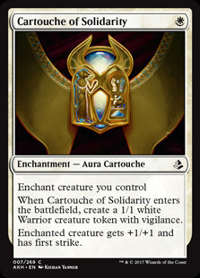 AmonkhetRupture de stockEnchant creature you control When Cartouche of Solidarity enters the battlefield, create a 1/1 white Warrior creature token with vigilance. Enchant...