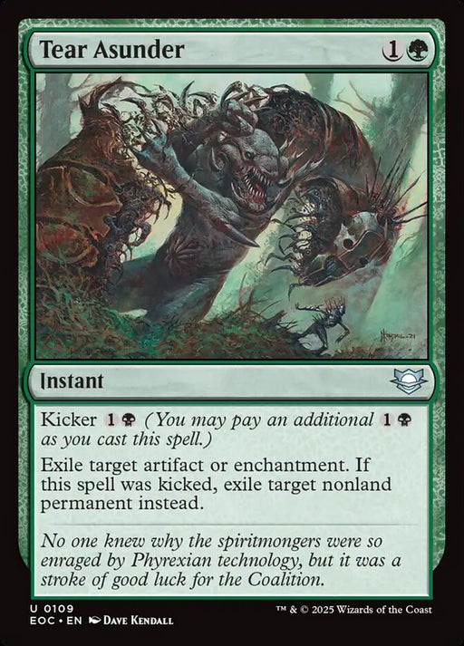 Edge of Eternities CommanderRupture de stockDestroy target permanent. Its controller creates a 3/3 green Beast creature token.