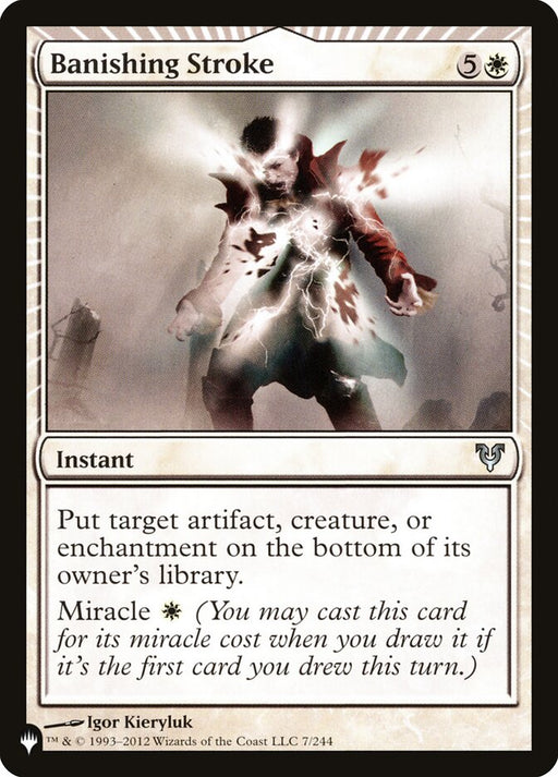 The ListRupture de stockPut target artifact, creature, or enchantment on the bottom of its owner's library. Miracle {W} (You may cast this card for its miracle cost when y...