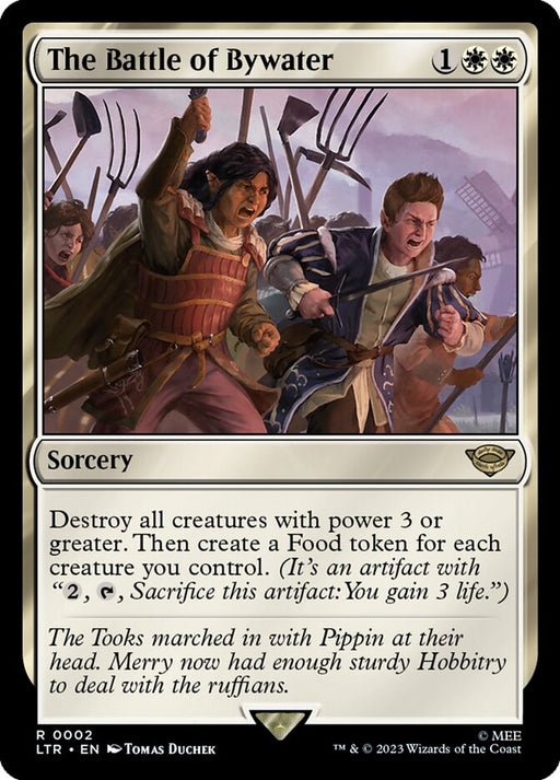 The Lord of the Rings: Tales of Middle-earthStock basDestroy all creatures with power 3 or greater. Then create a Food token for each creature you control. (It's an artifact with "{2}, {T}, Sacrifice ...